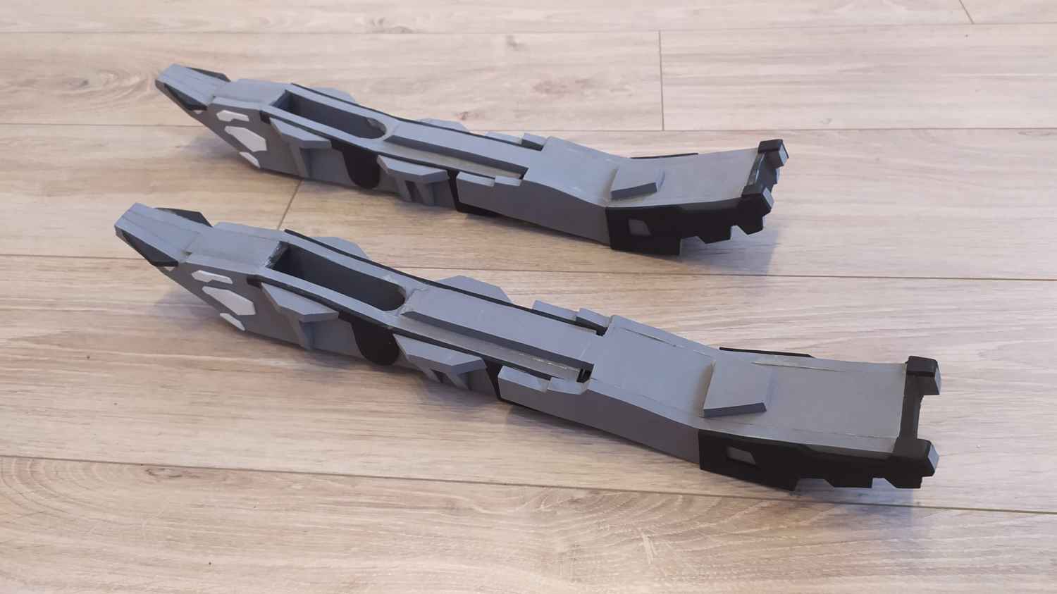 Je répète les étapes de découpe, d’assemblage et de ponçage autant de fois que nécessaire, jusqu’à obtenir toutes les pièces dont j’ai besoin pour constituer intégralement le prop.
