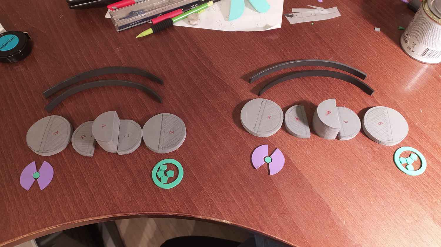 Pour chaque éléments qui composent le prop, j’ai du couper et assembler un grand nombre de petites pièces de mousse EVA.