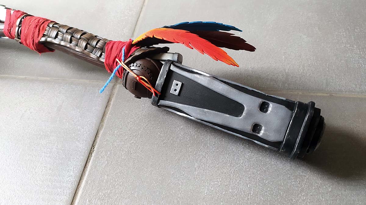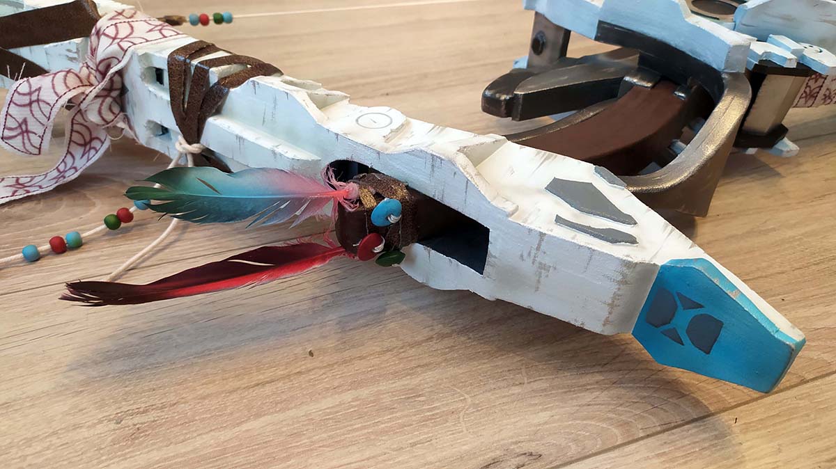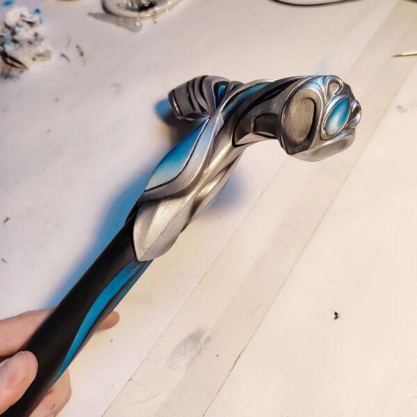 Si mon parcours créatif a commencé par le dessin, c’est la fabrication de props qui m’a permis de donner une forme concrète à ces univers : créer des armes, des accessoires ou des pièces de costume, les assembler, les peindre et leur donner une présence « réelle ». La fabrication de props cosplay fait en effet appel à de nombreuses techniques, de la conception à la finition. Selon les projets, j’utilise principalement de la mousse EVA pour des props légers et adaptés à la convention, mais aussi l’impression 3D (PLA) pour des pièces plus rigides ou plus détaillées.